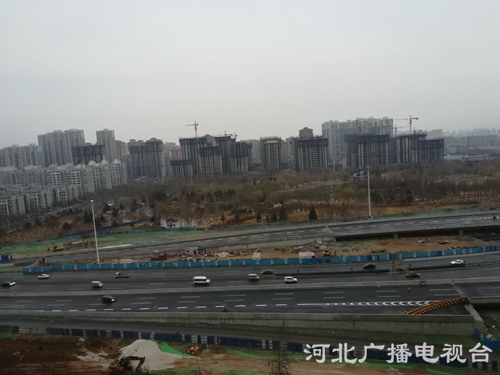 今晨,石家庄东南二环交口附近街景。(杨磊摄)
