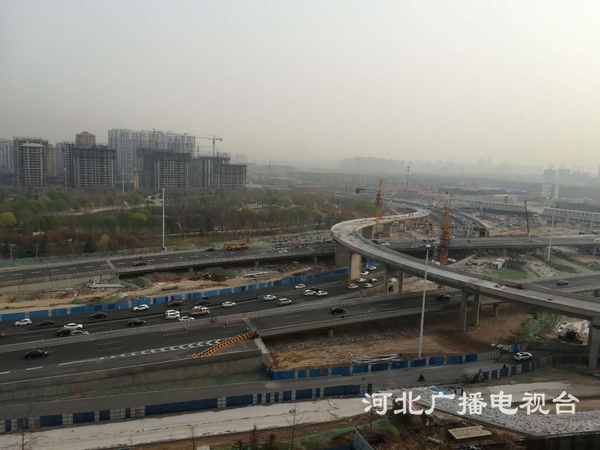 今晨6点,石家庄东南二环交口附近街景。(杨磊摄)