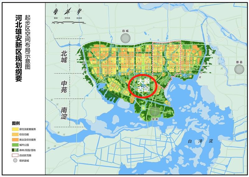 雄安新区规划纲要起步区空间布局示意图。