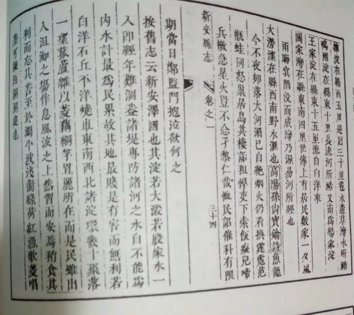 对于《纲要》中提到的大溵古淀,李卫东介绍说,在史料中,确有大溵古淀的记载,“大溵古淀”的身影最早出现在《水经注》中。《水经注·易水注》记述:“易水又东,埿水注入,水上承二陂,于容城县东南,谓之大埿淀,小埿淀。”这里所谓的“大埿淀”“小埿淀”(也有称为“大渥淀”“小渥淀”),也称“大殷淀”“殷家淀”,即今天的“大王淀”“小王淀”。《新安县志》(今安新县)记载:大殷淀,在县西北五里,即《水经》所谓“大渥淀”也。周回四十里,白沟河溢出,繇容城天沟、芦草湾水汇而为淀。