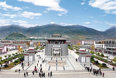 平武县南坝镇的唐山大道旁,唐山援建的蜀汉江油关城楼,已经成为九环线上旅游驻留景观之一。平武县委宣传部供图