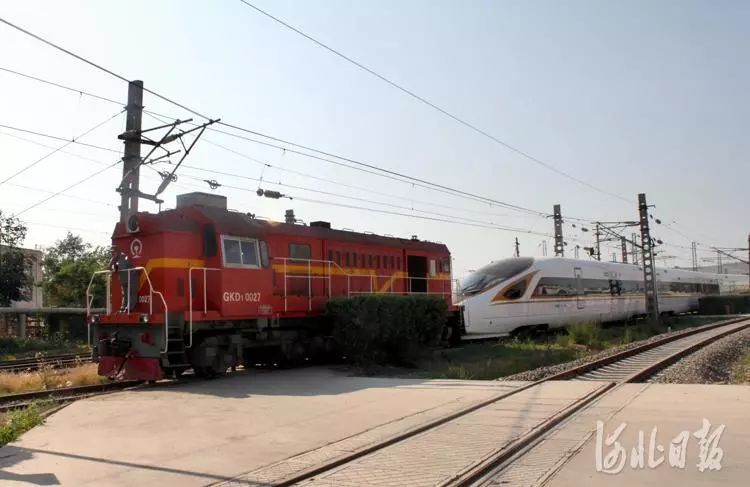 我国首列长编组“复兴号”在内燃机车牵引下驶出调试车间。何经伟摄