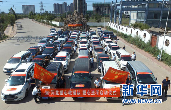 新华网石家庄6月1日电(王立鹏)由河北爱心救援队发起的爱心送考启动仪式5月31日下午在石家庄举行。仪式现场,河北爱心救援队为送考车辆发放防暑物品、粘贴送考标识,为即将到来的高考做准备。