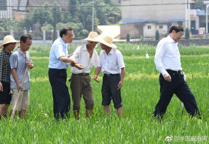 1、李克强总理今天来到湖南衡阳衡南县云集镇白水村考察农业生产情况。沿着狭窄泥泞的田埂,总理走进一处稻田,察看秧苗长势,并与正在田间耕作的农民一笔一笔算细账。从田头返回时,一位农民为方便总理在狭窄的田埂走路,下到水田,总理一把拉他上来说:咱们排队一起走!