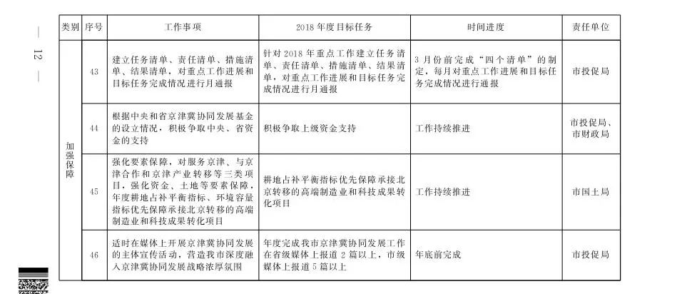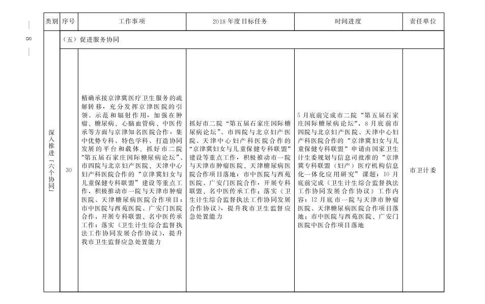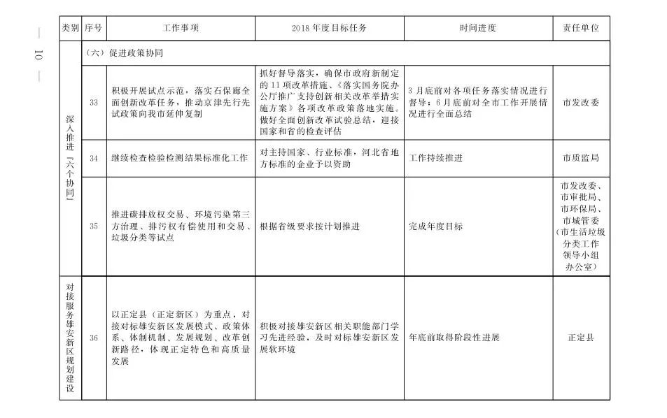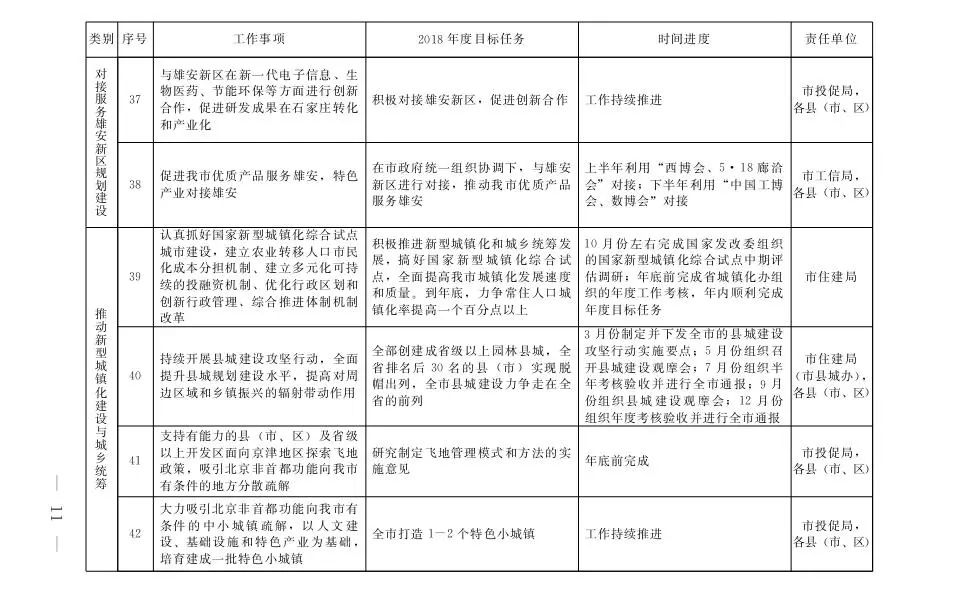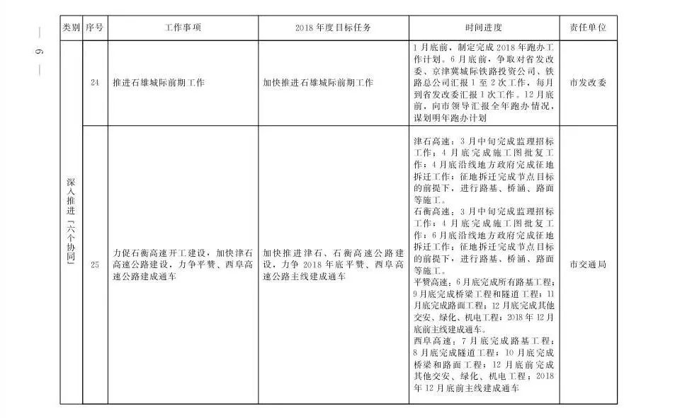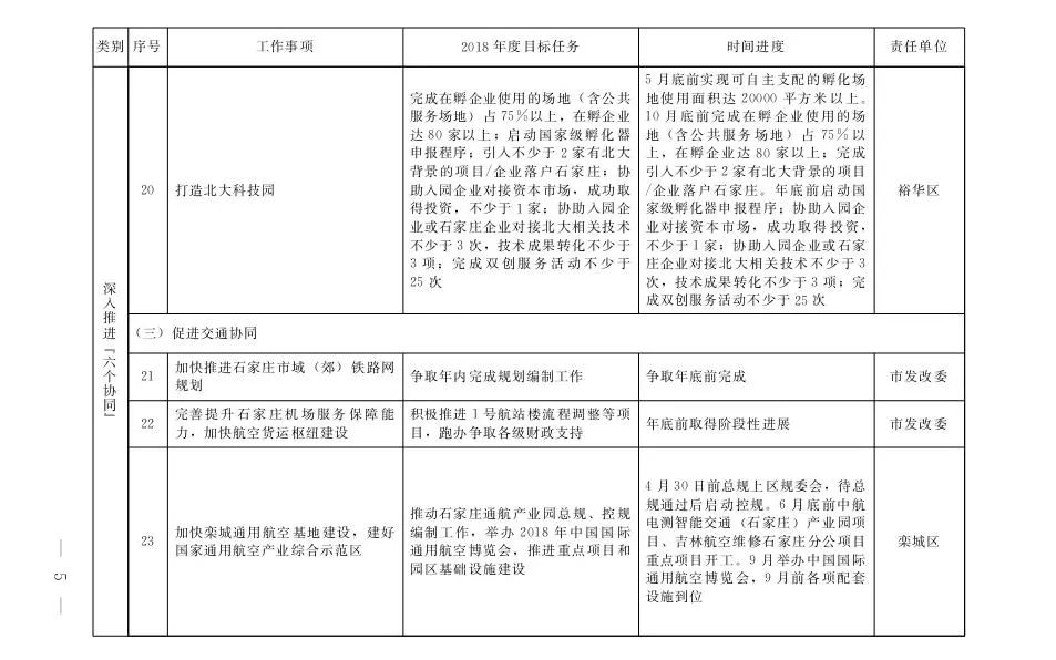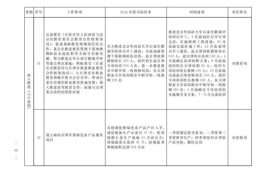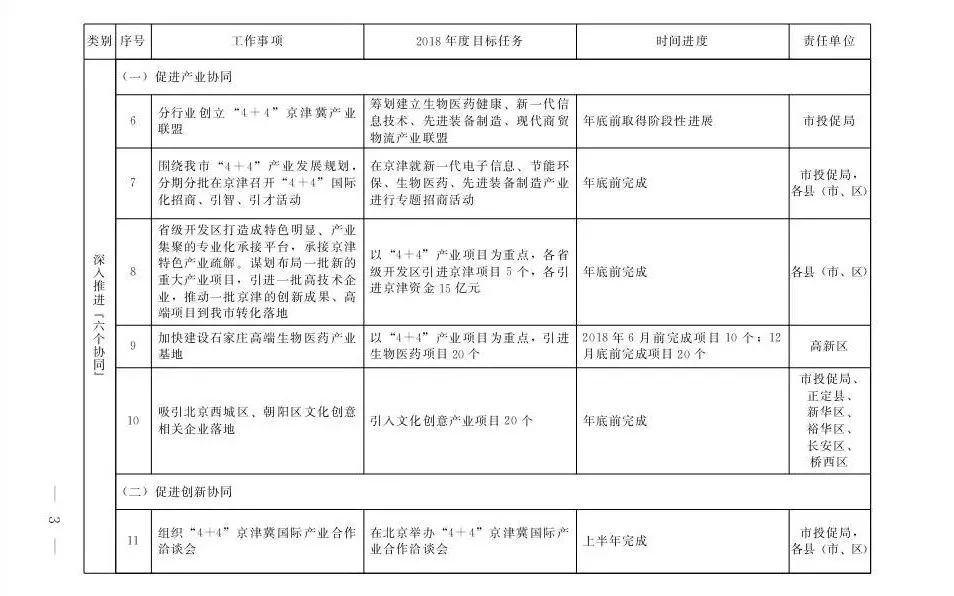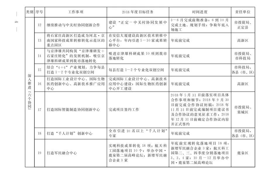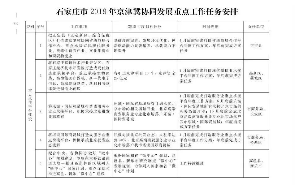 石家庄市2018年京津冀协调发展重点任务安排一览表