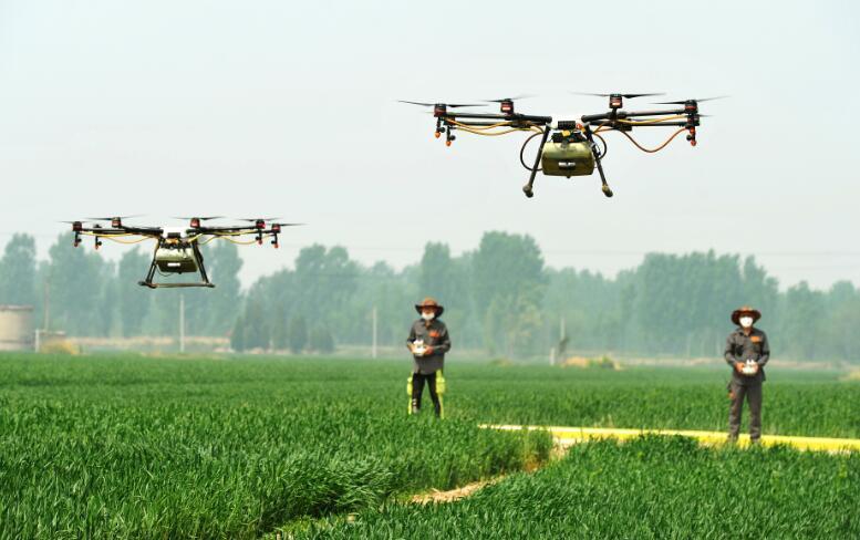 植保人员在泊头市交河镇陈北村操作无人机给小麦喷洒农药。(资料图)新华社记者牟宇摄
