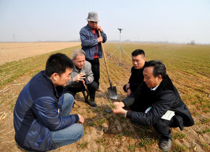 泊头市农业局植保站工作人员为泊头市宋八屯村农民讲授小麦管理方面的知识。(资料图)新华社记者牟宇摄