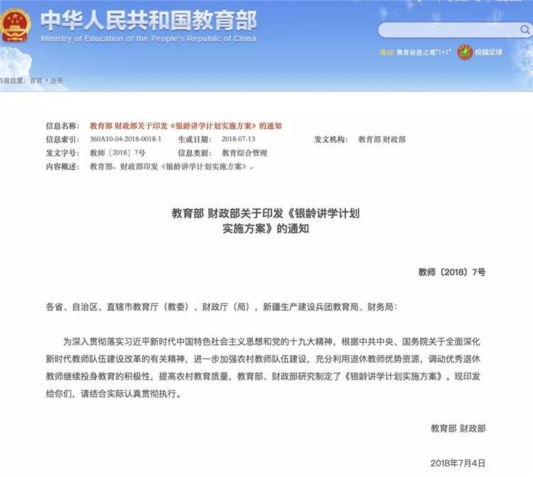 为进一步加强农村教师队伍建设,充分利用退休教师优势资源,教育部、财政部近日研究制定《银龄讲学计划实施方案》,面向社会公开招募一批优秀退休校长、教研员、特级教师、高级教师等到农村义务教育学校讲学,发挥优秀退休教师引领示范作用,促进城乡义务教育均衡发展。