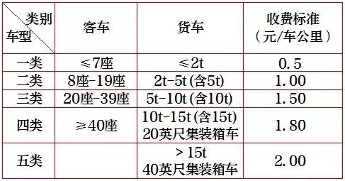 二、车辆通行费收费标准