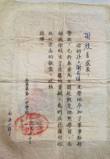 二中给参军学生家长的书信(1951年)