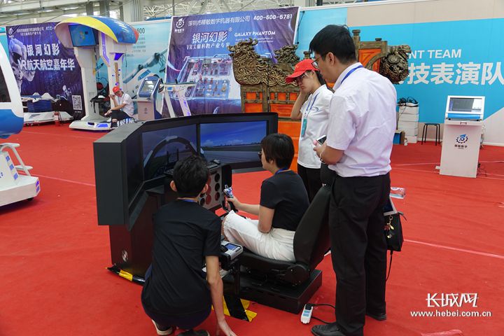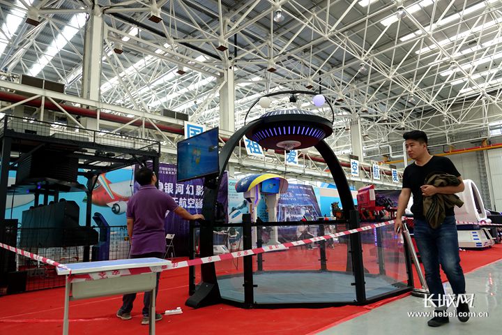 石家庄航展场馆展示,游客正在体验驾驶飞机。记者 张晨光 摄