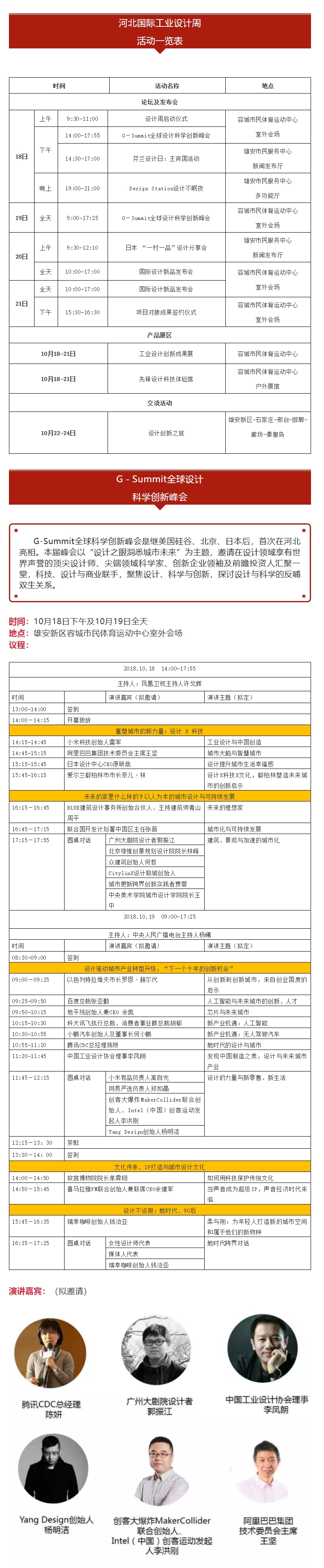 10月18-24日,以“设计力点亮未来之城”为主题的2018第一届河北国际工业设计周将在雄安新区及有关市县分会场举办。届时,故宫博物院院长单霁翔、小米科技创始人雷军、阿里巴巴集团技术委员会主席王坚、百度总裁张亚勤、日本设计中心CEO原研哉等等大咖或将莅临活动现场。
