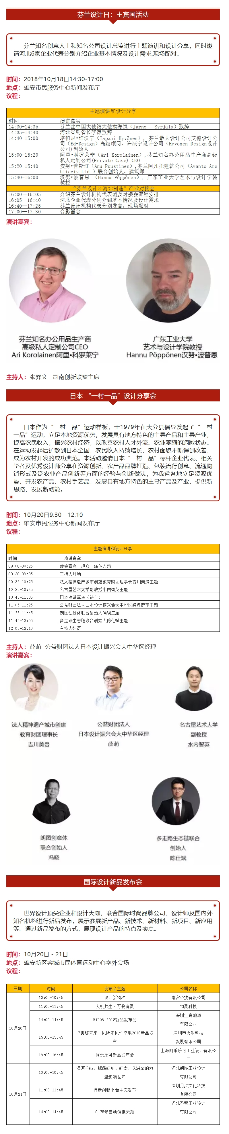 本届设计周选择芬兰作为主宾国家,将举办1场高端峰会、2场主题展览、4项分享活动、1次创新之旅等系列活动,策展团队来自海峡两岸,与会嘉宾来自日本、美国、芬兰、加拿大、爱尔兰等多个国家和地区,并有河北本土原创品牌同台亮相,全球顶尖设计团队共聚燕赵大地,成为河北首个集中展示文创、商业、设计、科技、创客、建筑等跨界盛事。来看活动详细一览表↓↓↓