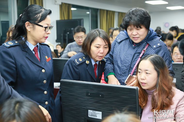 石家庄新华区税务人员上门指导企事业单位财务人员填报个税信息。张会平 摄