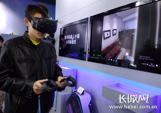 市民在香河机器人小镇体验VR技术。 祝雪娟 摄