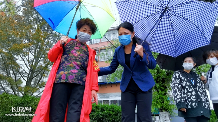 祥富里社区居民王素珍趁着雨天社区巡查,开始拍摄自己人生的第一支vlog。 长城新媒体记者 马宁 摄