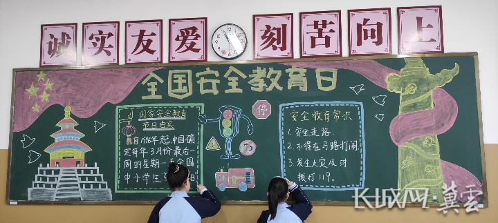 “一次黑板报展示”营造氛围。以学习宣传《国家安全法》为主要内容,组织学生创作国家安全主题黑板报,打造人人关心国家安全、人人参与国家安全的良好氛围。(临漳县委国安办供稿)