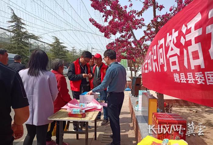 2023年4月15日是第八个全民国家安全教育日,为深入学习贯彻总体国家安全观,宣传普及国家安全法律法规,增强全县干部群众国家安全意识,3月29日,魏县县委国安办联合公安局等单位,在魏县东代固镇前闫庄村举办了“4·15国家安全知识问答活动”。