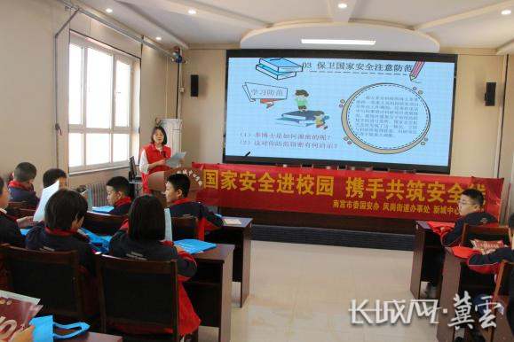 为深入贯彻落实总体国家安全观,增强全民国家安全意识,10月10日,南宫市委国安办、凤岗街道办事处和新城中心学校联合开展以“维护国家安全 厚植爱国情怀”为主题的国家安全进校园宣传教育活动,50余名学生参加活动。