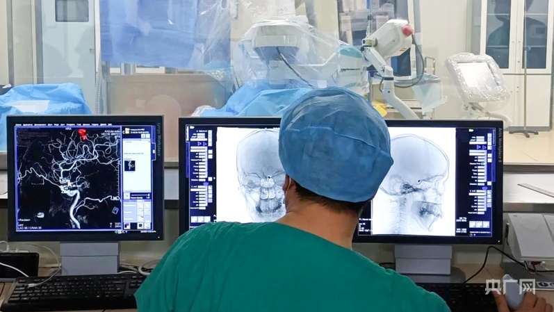 一名医生使用易度河北机器人科技有限公司脑血管造影手术机器人产品进行手术(央广网发 保定市发展和改革委员会供图)