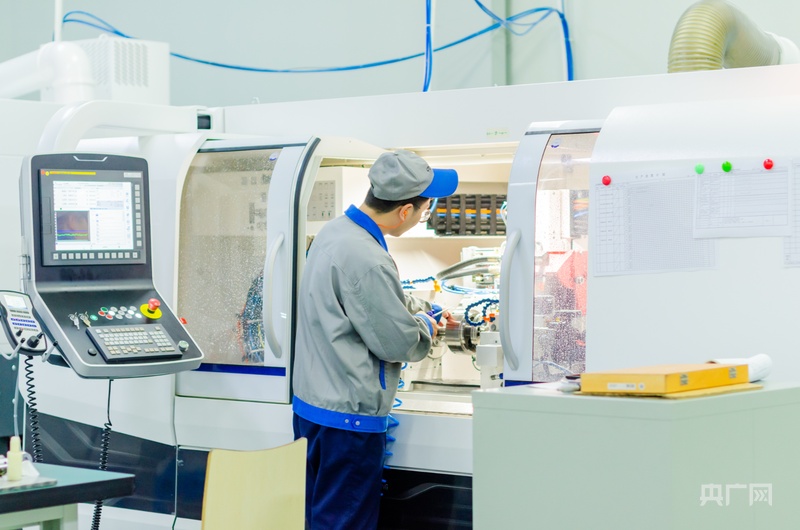 河北智昆精密传动科技有限公司内,一名工人在车间操作机床(央广网发 受访公司供图)
