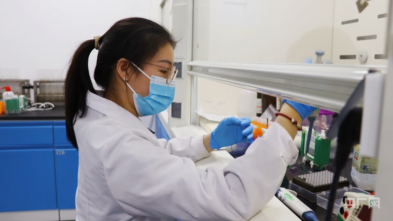 河北纳科生物科技有限公司内,一名研发人员正在进行蛋白纯度检测试验(央广网见习记者 姜丽丽 摄)