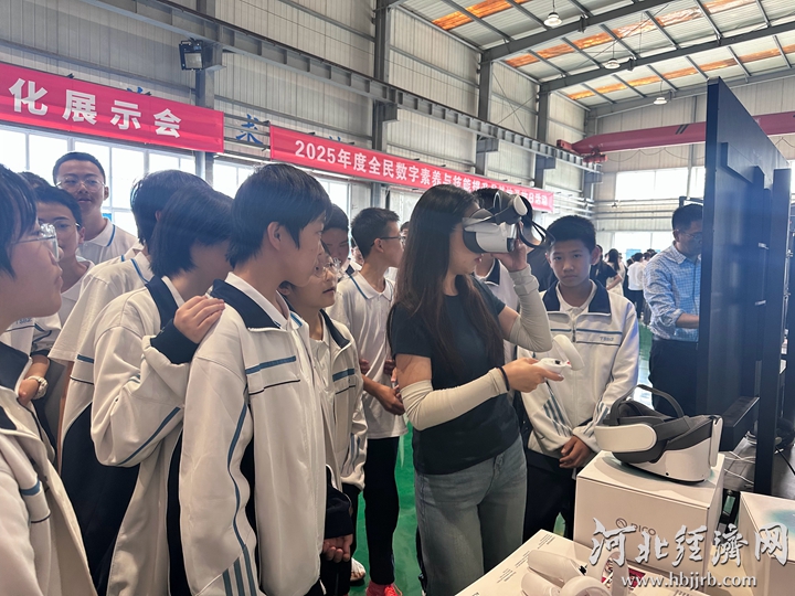 唐山市第八中学师生佩戴VR设备,体验红色场景。