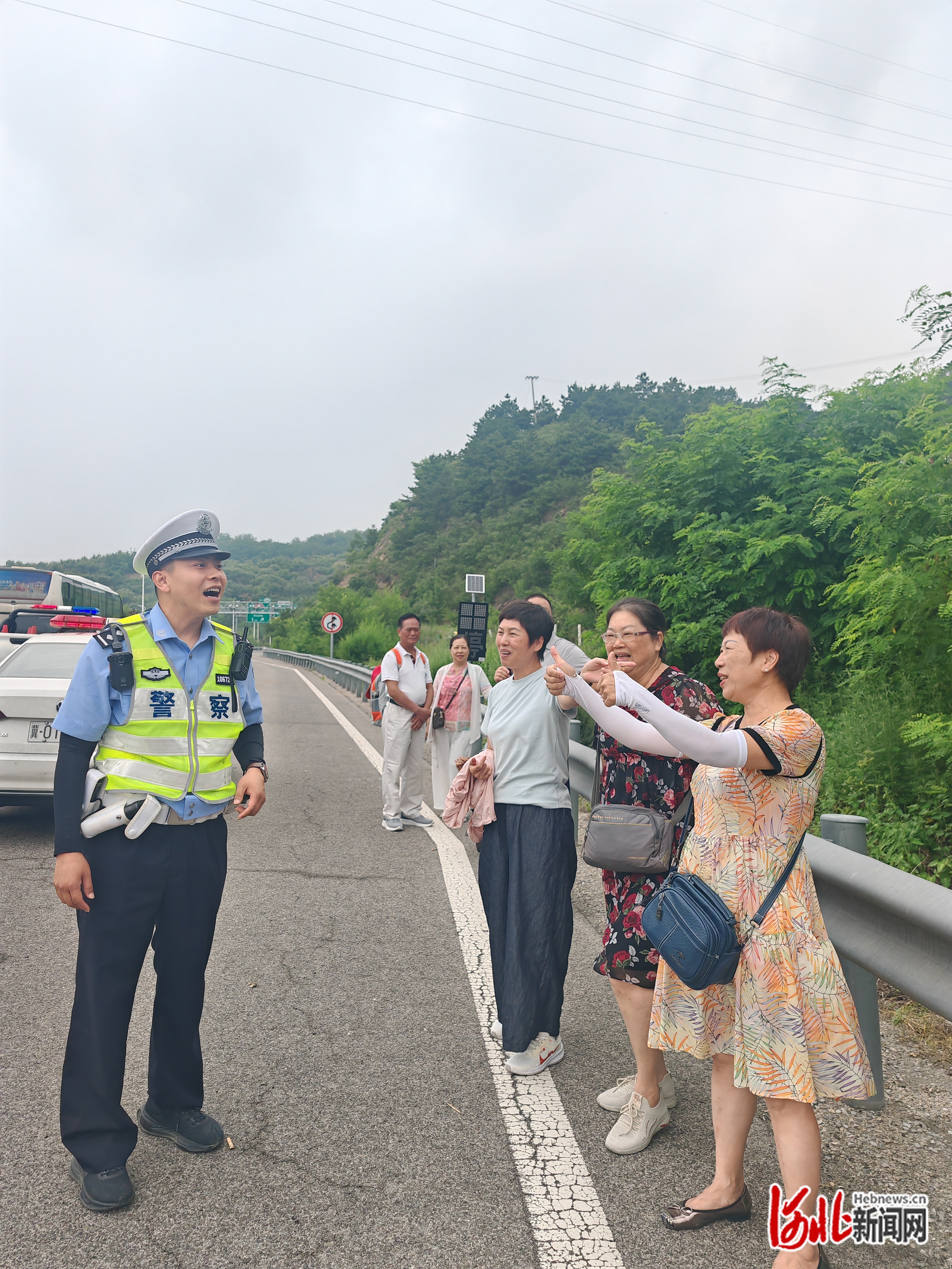 经过40分钟抢修,客车故障排除。临别时,游客们纷纷向交警致谢:“为河北交警点赞!”“以后来广东,我们带你们玩!”一位游客说:“这么近,那么美,周末到河北。吸引我们来河北玩的不仅是山水,更有河北交警带来的满满安全感。”