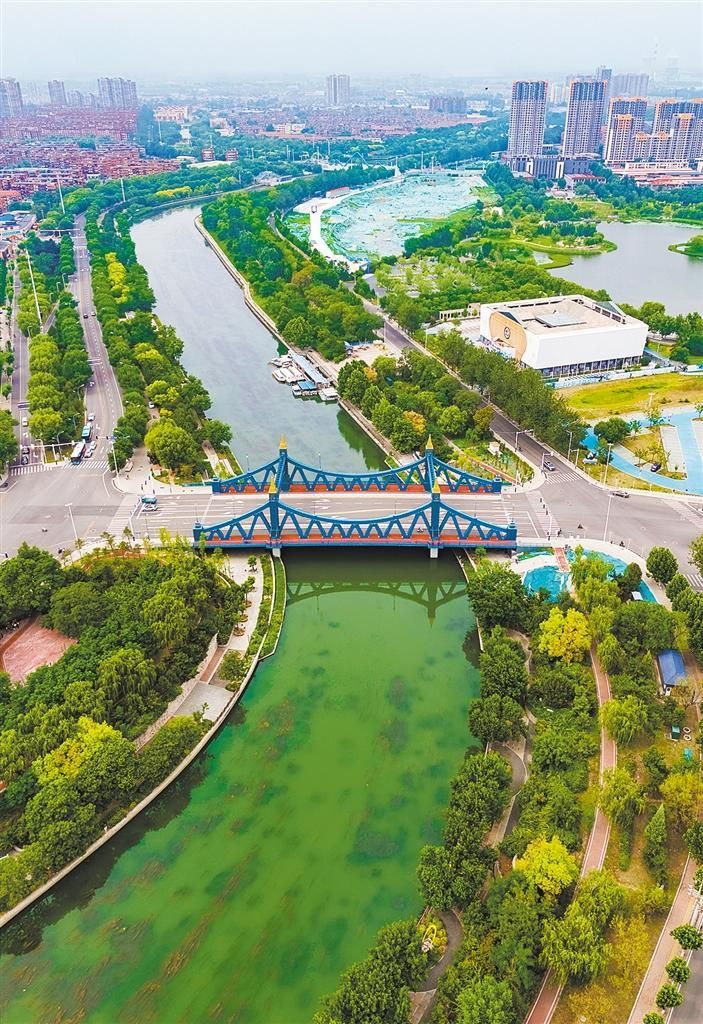 6月28日拍摄的唐山市中心城区环城水系。该水系全长57公里,是唐山市区重要的生态景观廊道。