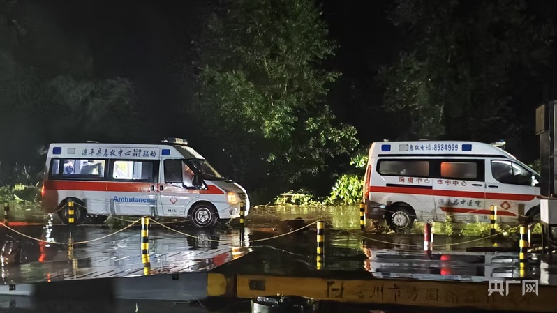 等待救援的医疗救护车(央广网记者 王艺霖 摄)