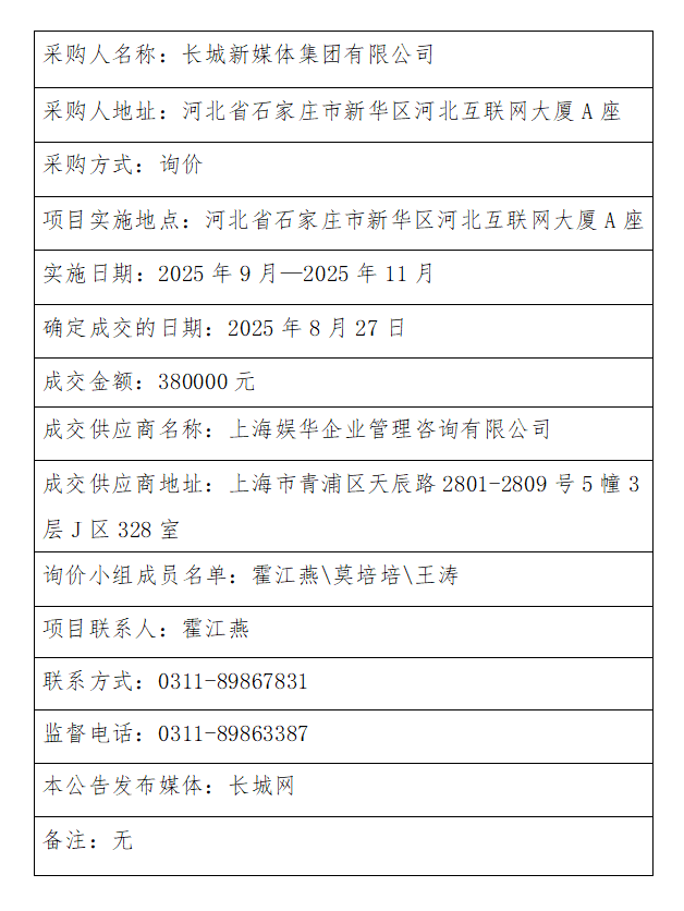 长城新媒体(河北)股份有限公司采购视频会议系统的公告
