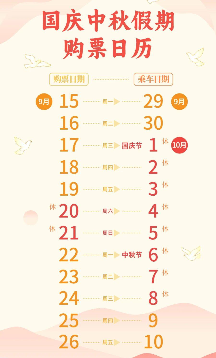 ■ #国庆中秋假期购票日历出炉#