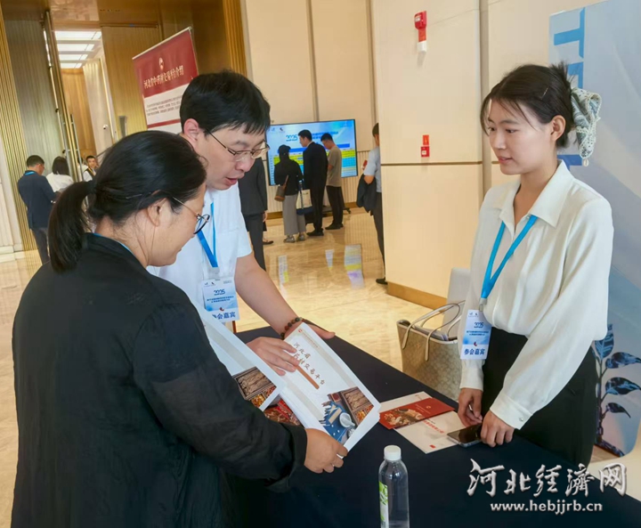 在河北省中药材交易平台展区,参会嘉宾驻足咨询。河北经济日报记者 吴新光 摄