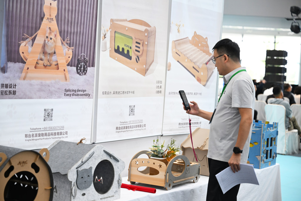9月19日,观众在第七届中国・南和宠物产业博览会暨第二届宠物产业国际链博会上选购宠物用品。