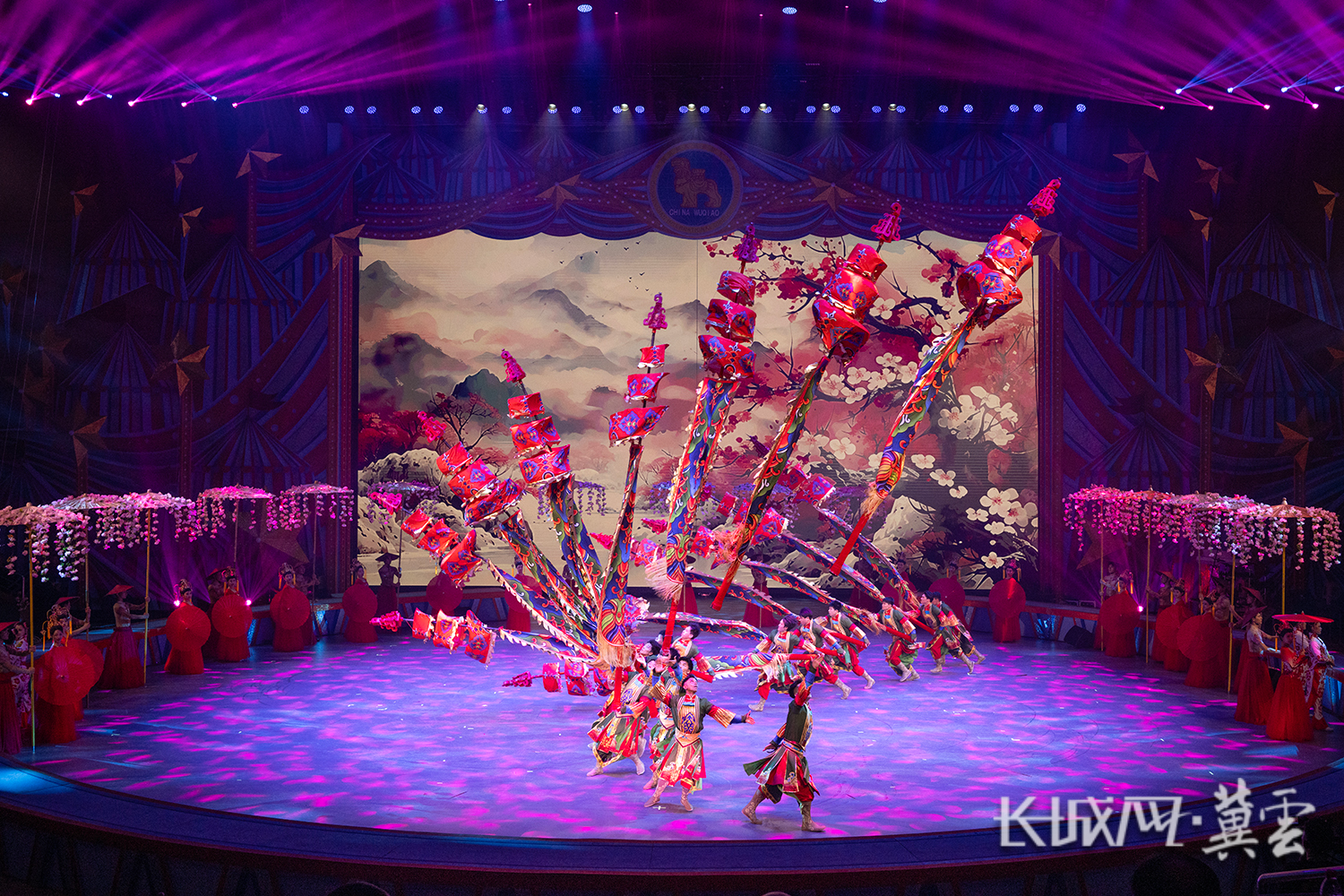 当夜幕降临,吴桥的精彩仍在继续。江湖大剧院的现代杂技秀,将传统技艺与声、光、电等现代科技及舞蹈、戏剧等艺术形式深度融合。经典节目“大变活人”升级为视觉更为震撼的“一人进、八人出”;“仙女散花”融入了柔美的孔雀舞韵,更添诗意;“空中飞人”在炫酷灯光和环绕音效的加持下,营造出极具冲击力的沉浸式观演体验。这些创新演艺形式,让古老杂技闪耀出时代的璀璨光彩。