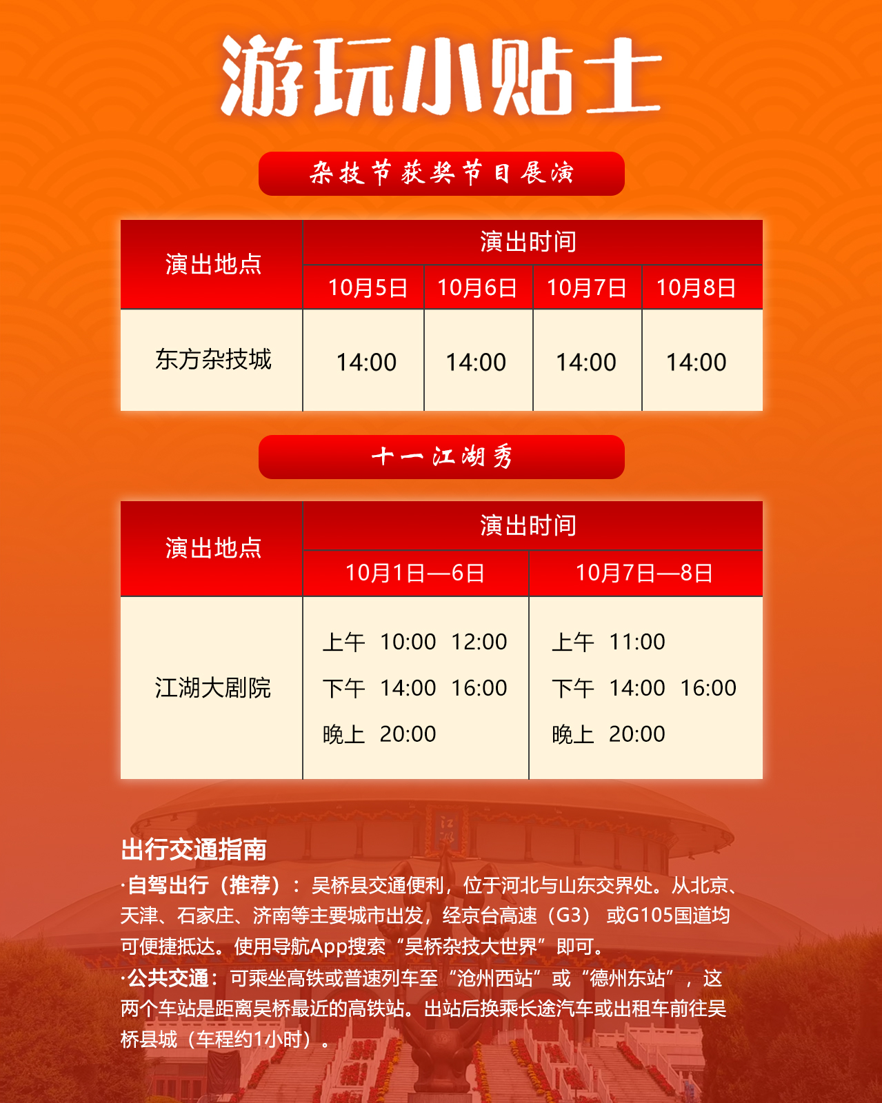 这个金秋,在吴桥,您遇见的不仅是一场场惊险刺激的杂技表演,更是一次与千年江湖文化的深度对话,一次见证古老技艺在新时代创造性转化、创新性发展的生动实践。吴桥,这座深植杂技基因的小城,正以其独特的魅力,向世界发出诚挚的邀请。