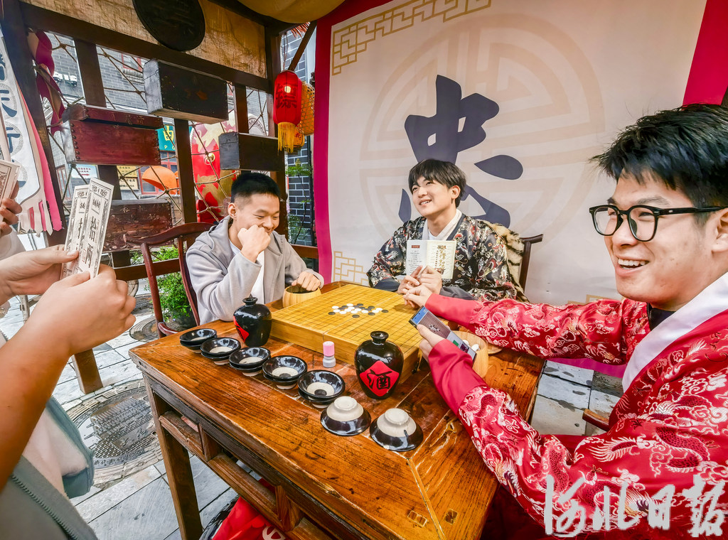 10月2日,游客在大名古城体验闯关游戏,乐享假日。河北日报记者 田 明摄