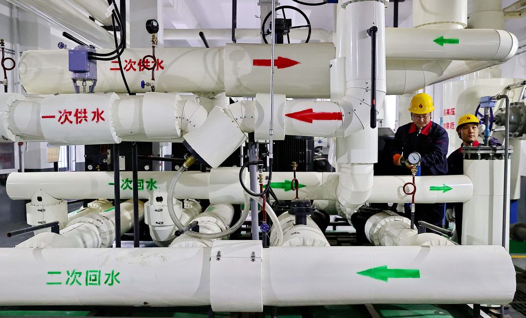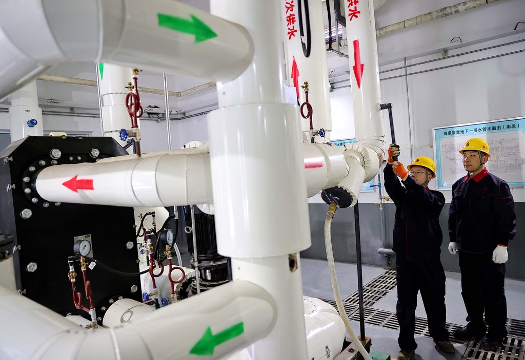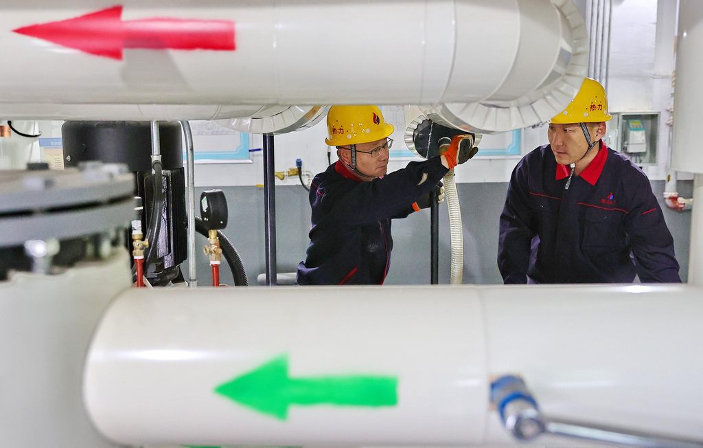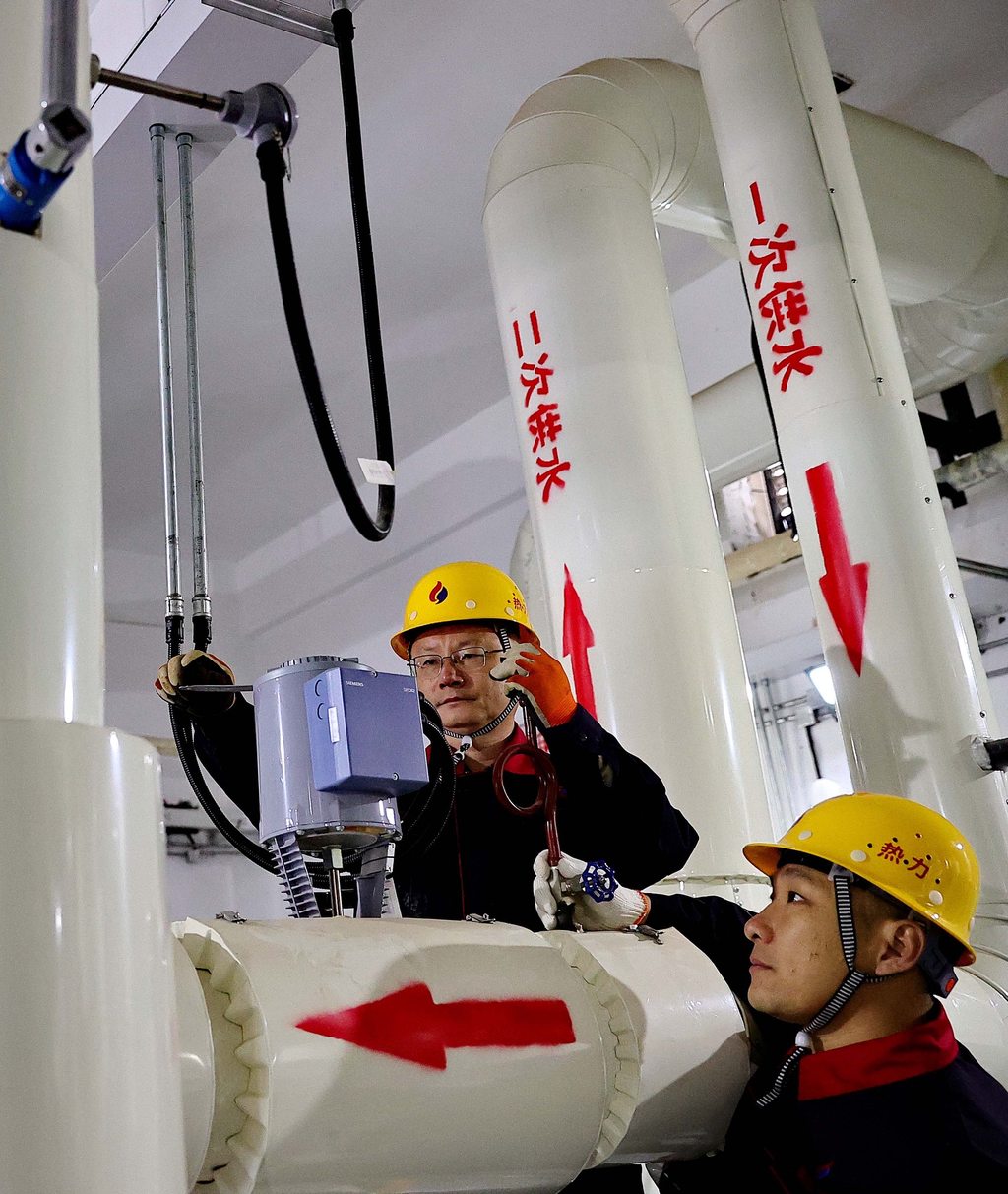 10月8日,秦皇岛市热力有限责任公司白塔岭供热分公司工作人员在热力站巡检。