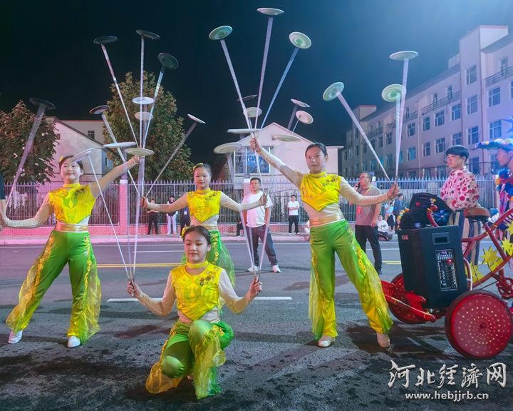 夜场大巡游队伍中杂技演员表演转碟。河北经济日报记者 吴新光 摄