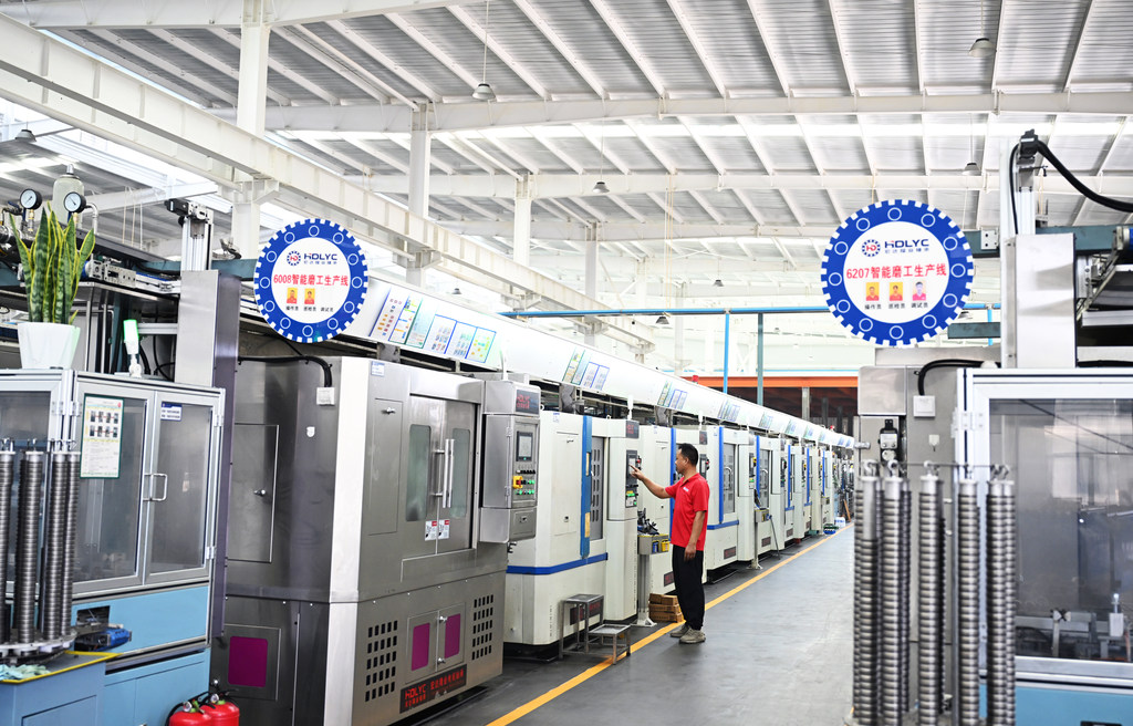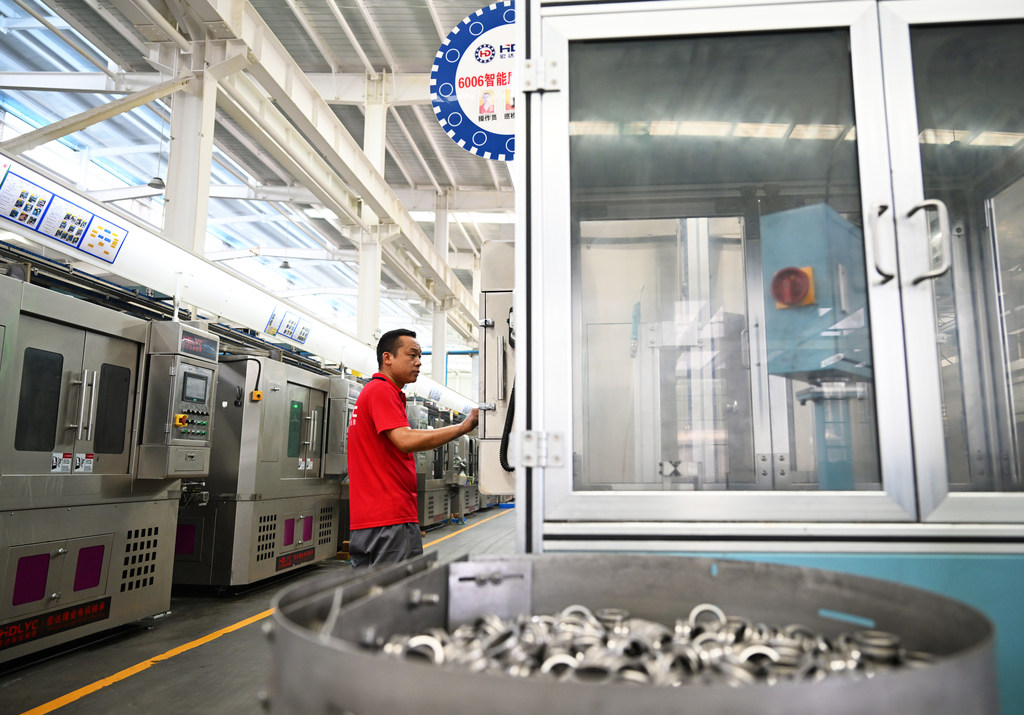 9月19日,位于临西轴承工业园区的河北宏达隆业轴承有限公司员工在智能化车间巡检。
