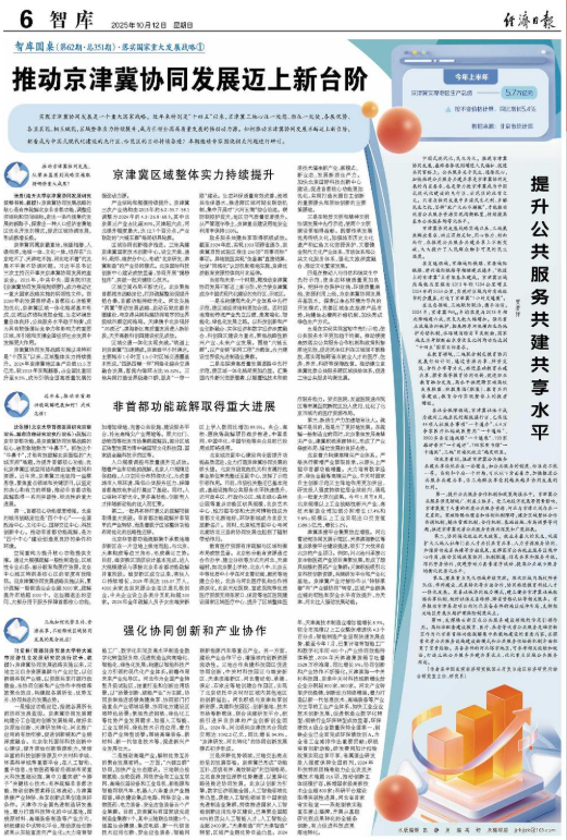 叶堂林(首都经济贸易大学特大城市经济社会发展研究院执行院长、教授):京津冀协同发展战略实施以来,三地立足自身资源禀赋与产业定位,以创新链串联产业链,以资源共享打破行政壁垒,在协同创新和产业协作中持续释放聚合效应,构建起各展所长、优势互补、协同共进的发展态势。