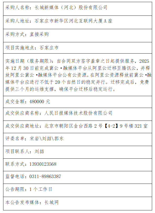 冀云·融媒体平台公有云迁移项目成交结果公告