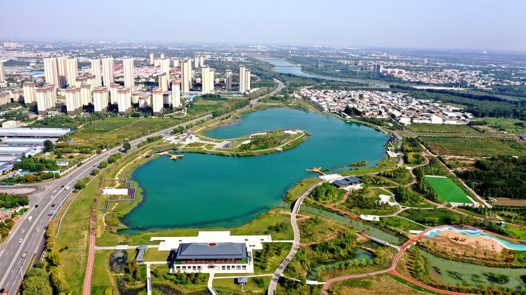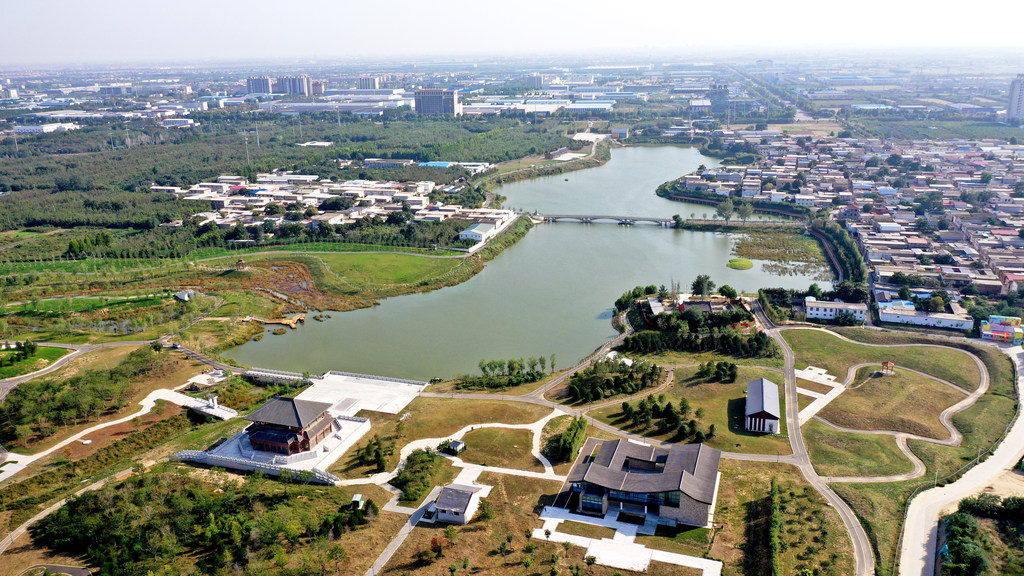 9月30日,无人机拍摄的邢台百泉鸳水公园。