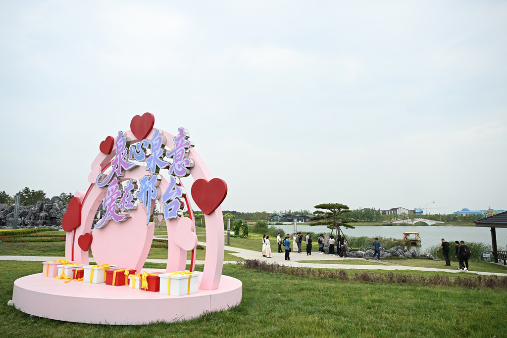 9月15日,游客在邢台百泉鸳水公园赏景游玩。