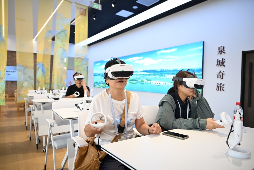 9月15日,游客在邢台泉文化体验中心利用VR体验泉文化。