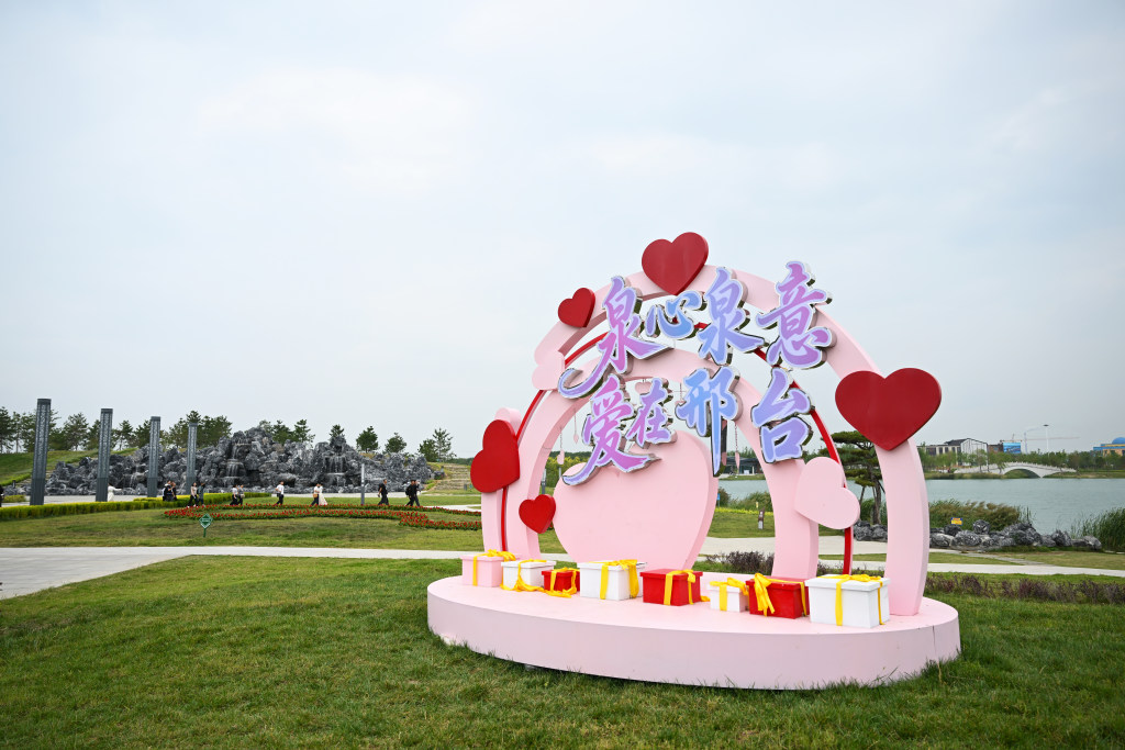9月15日,游客在邢台市华庄泉广场赏泉。