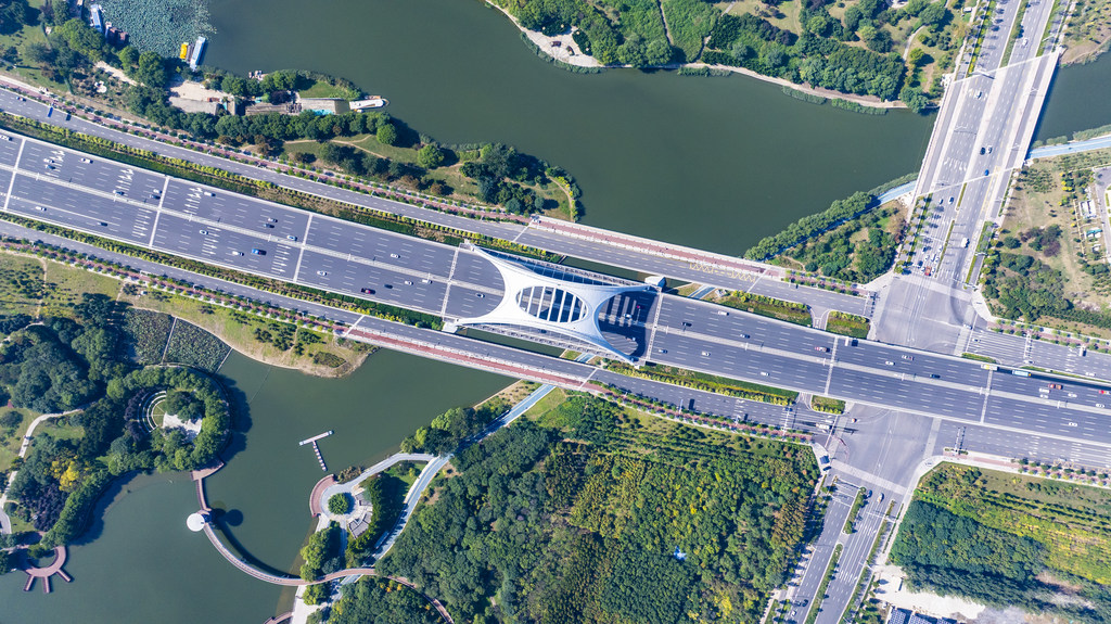 水系两岸绿树成荫。