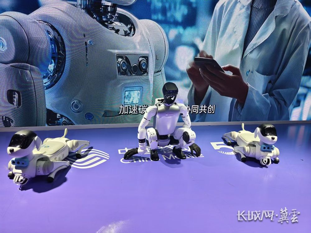 长城网·冀云客户端讯(记者 周亚彬 王棋)10月17日上午,在2025中国国际数字经济博览会3号展馆内,中国移动展区附近热闹非凡,人形机器人和机器狗在展台前大秀舞技,充满活力的舞步,流畅的动作衔接,配上靓丽的外形,让人眼前一亮。现场观众纷纷驻足围观,记录“未来生活”的图景。