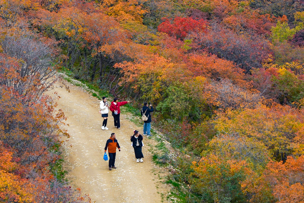 10月20日,游客在沙河市佛照山观赏红叶美景。