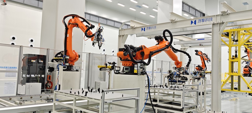 10月22日,蓝箭鸿擎(雄安)空间科技有限公司(以下简称“雄安鸿擎科技”)卫星智能制造中试基地内,首颗“雄安造”卫星——“雄安一号”(鸿鹄技术验证星)完成生产下线。图为卫星智能制造中试基地内的生产线。河北日报记者 曹铮 摄